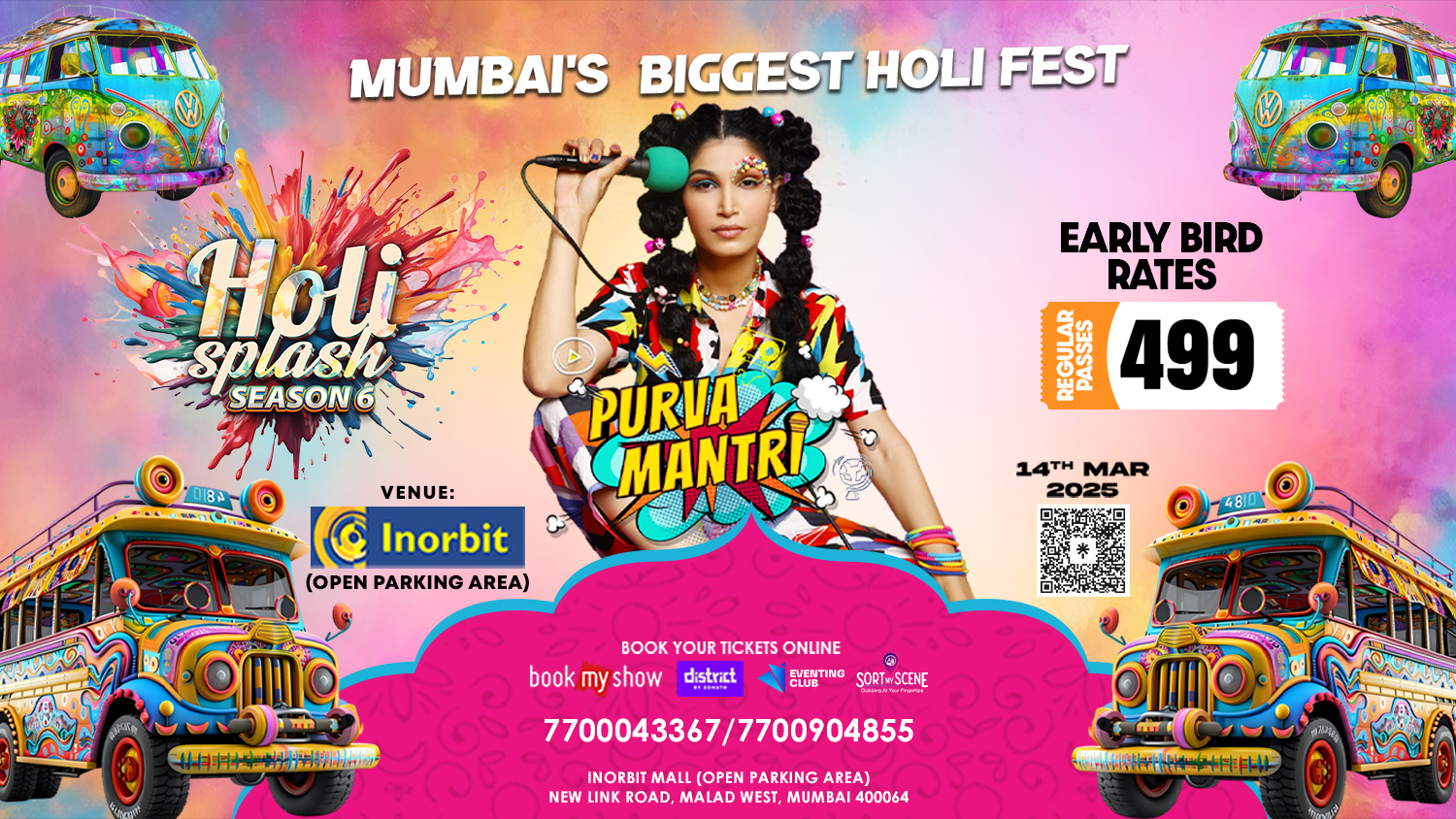 Immerse in mesmerizing performances,vibrant soundscapes,and interactive performances at our Holi Splash extravaganza. Experience a festival atmosphere like no other, where unforgettable moments.